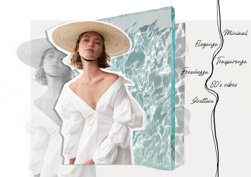 Si tratta di diciannove proposte che accompagnano, dal giorno alla notte, una donna dallo spirito frizzante come la brezza marina, glamour e che non ha timore di osare, un po’ come le donne degli Eighties che sposarono la corrente del Power Dressing per imporre la propria autorità in un ambiente, sia privato che professionale, dominato da uomini.