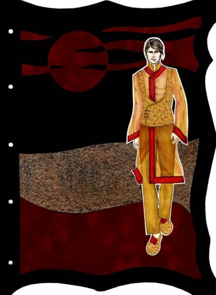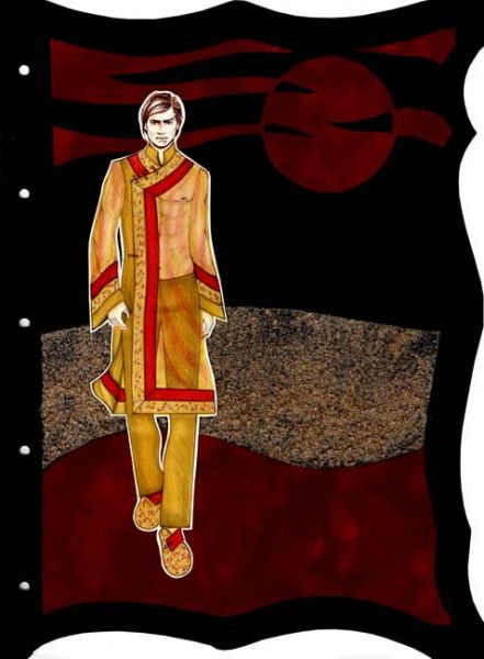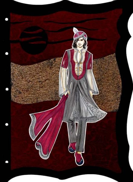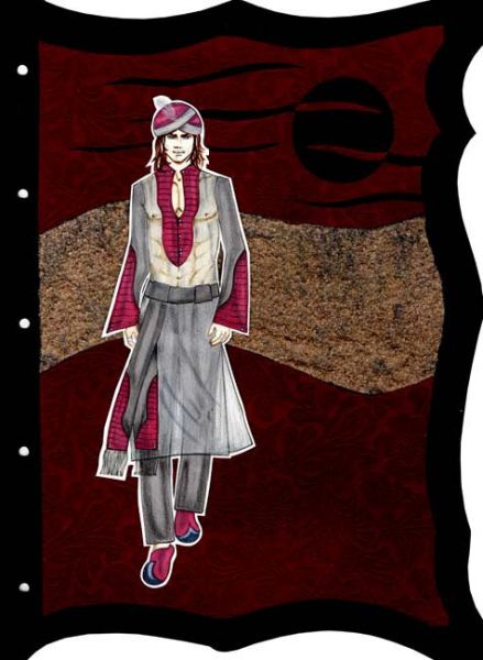 La scheda colori della mia collezione è “ricca” di vari toni: toni sabbie del deserto con colori che richiamano a tramonti cangianti, toni che richiamano la mandorla, il melone, il pistacchio, il caffè, il caramello, la fragola e il bordeaux e il grigio cenere. Tutti i tessuti sono morbidi, traspiranti e pregiati. Ho usato la seta (shantung), seta Ben Ares con decorazioni in oro e chiffon di seta. Quando si indossano gli abiti della mia collezione ci si dovrebbe sentire regale. Tutti i tessuti sono belli, naturali e di qualità superiore, quindi sono esorbitanti e con un prezzo ottimo che va dai 10 euro ai 30 euro al metro e le origini sono: Italiane, Indiane e Sud Africane. Nella presentazione della mia collezione ho voluto “curare” di ogni minimo capo. Ho usato una gamma di legno, ho ornato vari bottoni, ho usato nappe ma ciò che completa ogni indumento da me creato è la mia stravaganza.
