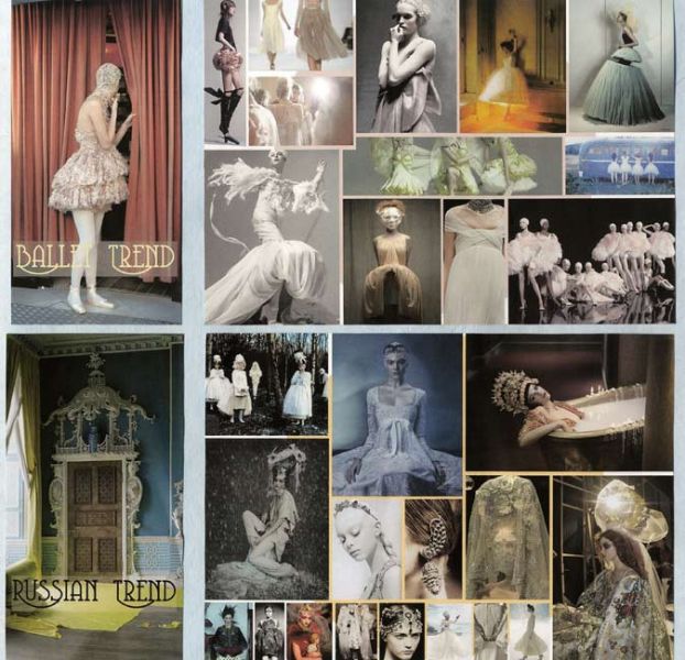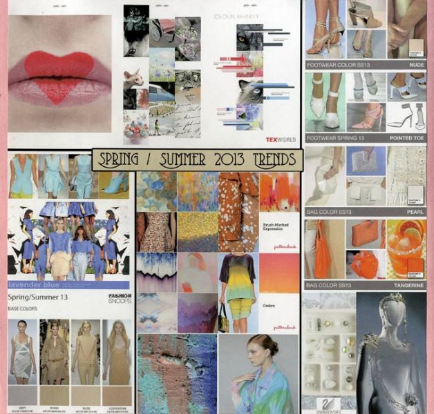 Gli studi del trend e le agenzie di moda annunciano una primavera/estate 2013 romantica e soft con colori chiari come azzurro, lavanda e color carne. Le stampe ricche di ombre e sfumate. Le scarpe saranno a punta e color carne. Le borse con colori perlati o mandarino. Quindi la mia collezione comprende tre stili che rappresentano ogni stagione: il ballet trend, il trend russo e il trend floreale.
