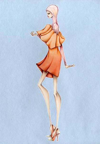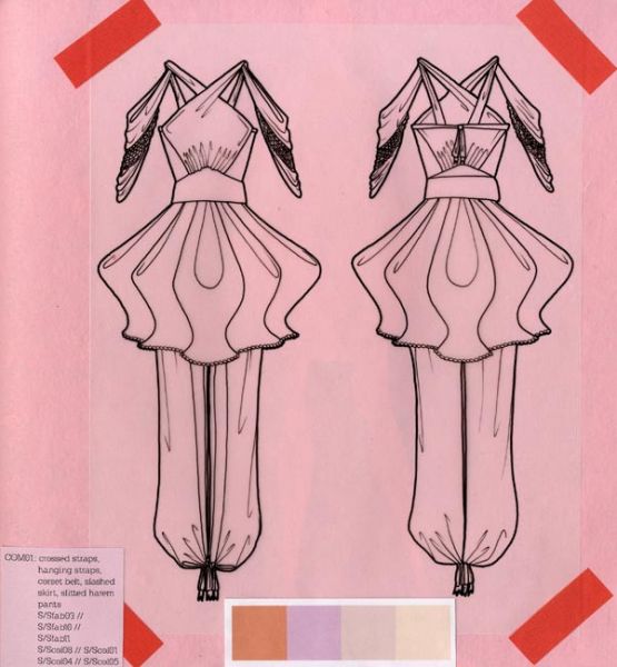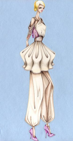 Come nella precedente collezione, i miei capi descrivono una donna che vuole, nel modo di vestire, far trasparire la propria personalità. I vestiti degli outfit sono classici ma allo stesso tempo raffinati e confortevoli. Tutta l’ambivalenza femminile rappresentata in una collezione. I pantaloni dell’ harem, le gonne dei sultani, le tende, e l’ abbondanza di perle convertiva l’universo. I colori vanno da una gamma di colori pastello a una di colori brillanti. Le stampe ricordano i petali maculati dei fiori e del pistillo.