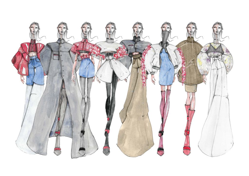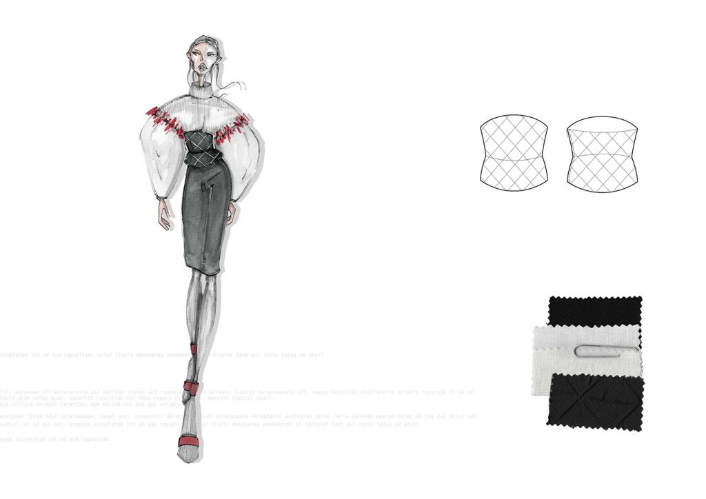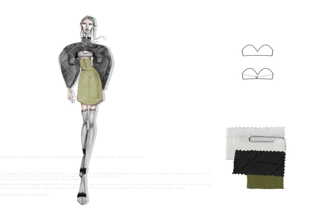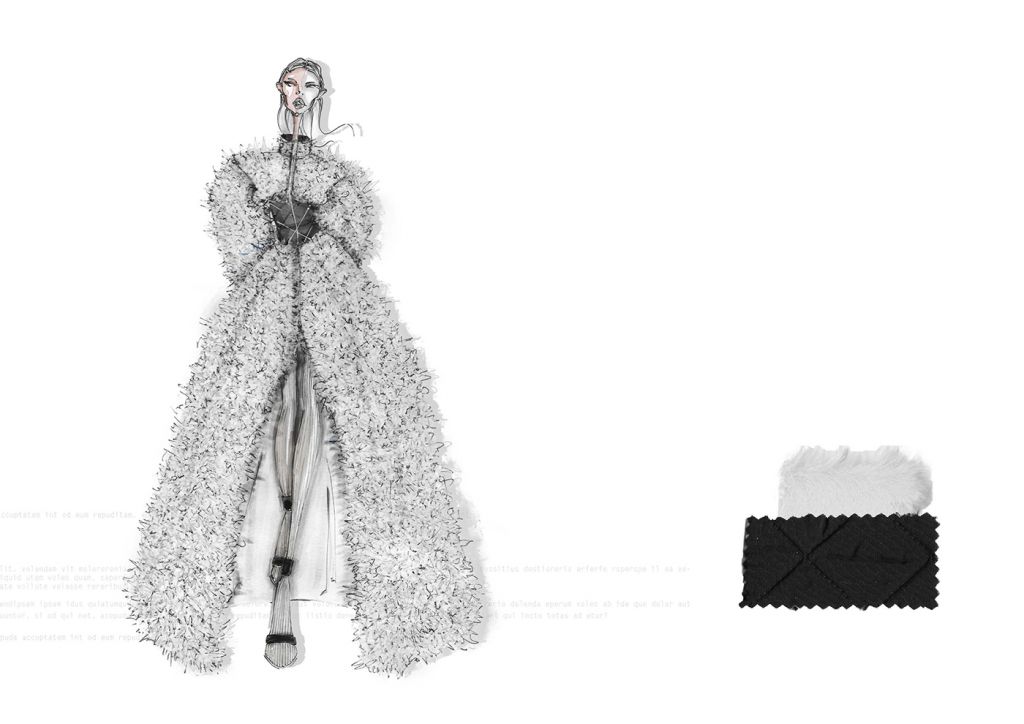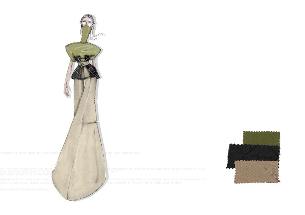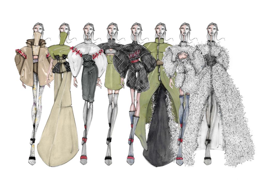 LA COLLEZIONE “SUBURB” E’ ISPIRATA AI SOBBORGHI DEGRADATI DI PICCOLI QUARTIERI INGLESI. ROVINE, EDIFICI ABBANDONATI E MEMORIE RITROVATE SONO GLI ELEMENTI CHE HANNO CARATTERIZZATO MAGGIORMENTE LO STILE E LE LINEE DI QUEST’ULTIMA. I COLORI, DAI TONI SCURI, TENDONO A SEMBRARE POLVEROSI, MALINCONICI. LE FORME IMPONENTI DEI CAPISPALLA SONO RIGIDE E STRUTTURATE, I VOLUMI ESTREMAMENTE OVERSIZE SONO ACCOSTATI AD ADERENZE MOZZAFIATO. FOTO RINVENUTE, PAGINE DI DIARIO STRAPPATE E LETTERE ABBANDONATE SONO ELEMENTI D’SIPIRAZIONE PER QUANTO RIGUARDA I CAPI PIU’ ELABORATI. SONO STATI IMPIEGATI MATERIALI “POVERI” PER CERCARE DI RIPRENDERE LE ATMOSFERE E LE EMOZIONI DEI LUOGHI CHE HANNO ISPIRATO LA COLLEZIONE FALL/WINTER 2020/21. IL DENIM TINTO IN DIVERSE COLORAZIONI VIENE ACCOSTATO AL VINILE CREANDO UN OUTFIT ORIGINALE E RICERCATO. LA PELLICCIA E’ABBINATA A CORSETTI DI IMBOTTITURA SINTETICA E LA TELA DI COTONE ACCOSTATA A TESSUTI IN MAGLIA DI DIFFERENTI PESANTEZZE. GLI ACCESSORI CHE ACCOMUNANO TUTTI I LOOK PROPOSTI SONO LE CALZE IN MAGLINA DI DIVERSE LUNGHEZZE ABBINATE AD UN SANDALO IN PELLE.